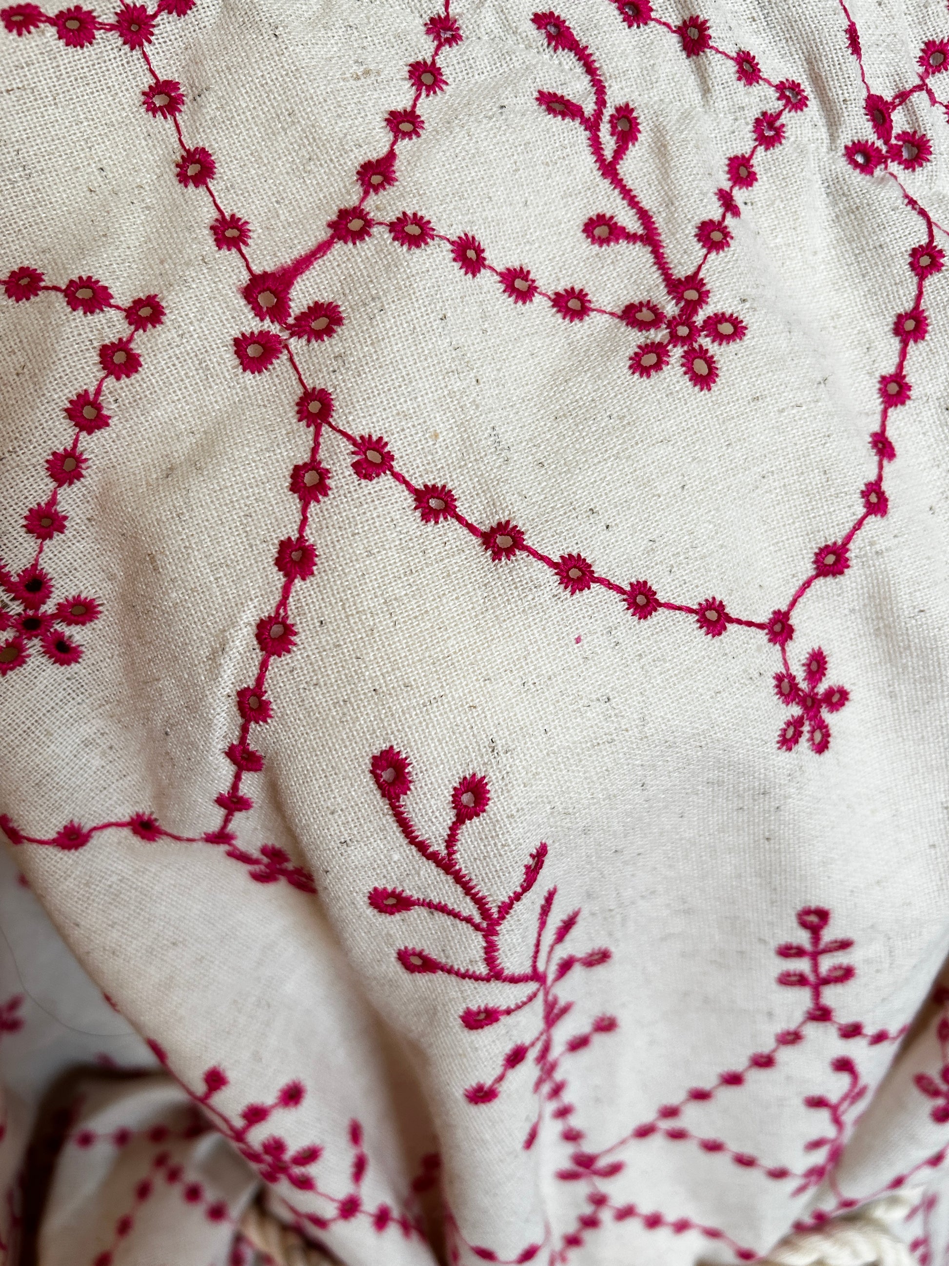 The “GRECO” beach mini dress features an elegant off-the-shoulder neckline paired with one long sleeve, creating a feminine, effortless silhouette. Crafted from fine embroidered linen, the delicate pink floral embroidery contrasts beautifully with the natural, raw tone of the linen, giving the dress a timeless and artisanal feel.